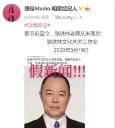 前段时间,网上爆出一则假新闻,说新年期间张铁林呆在英国感染了新式肺炎,想要回国医治。随后很快被经纪人驳斥谣言。